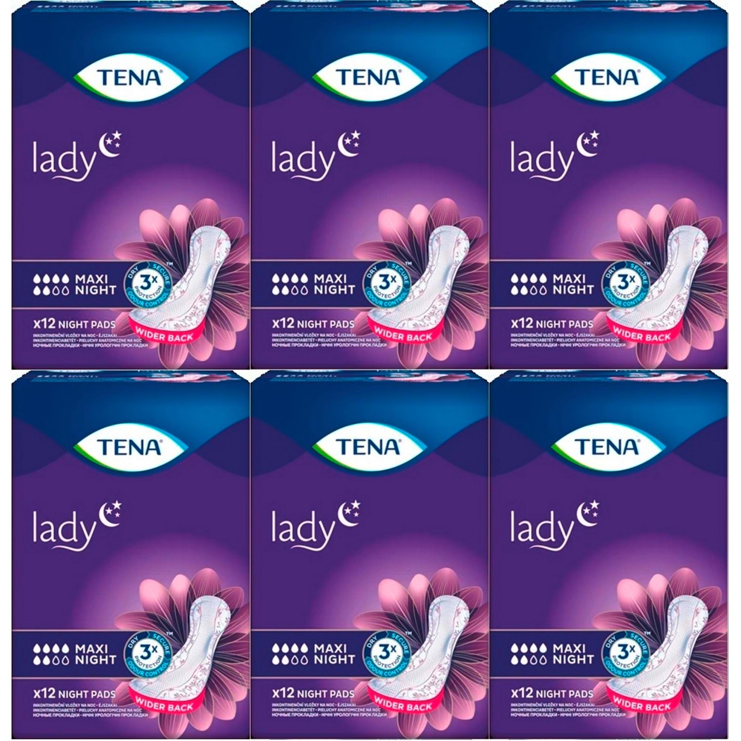 TENA Lady Maxi Night tekli ambalajlarda sunulur.