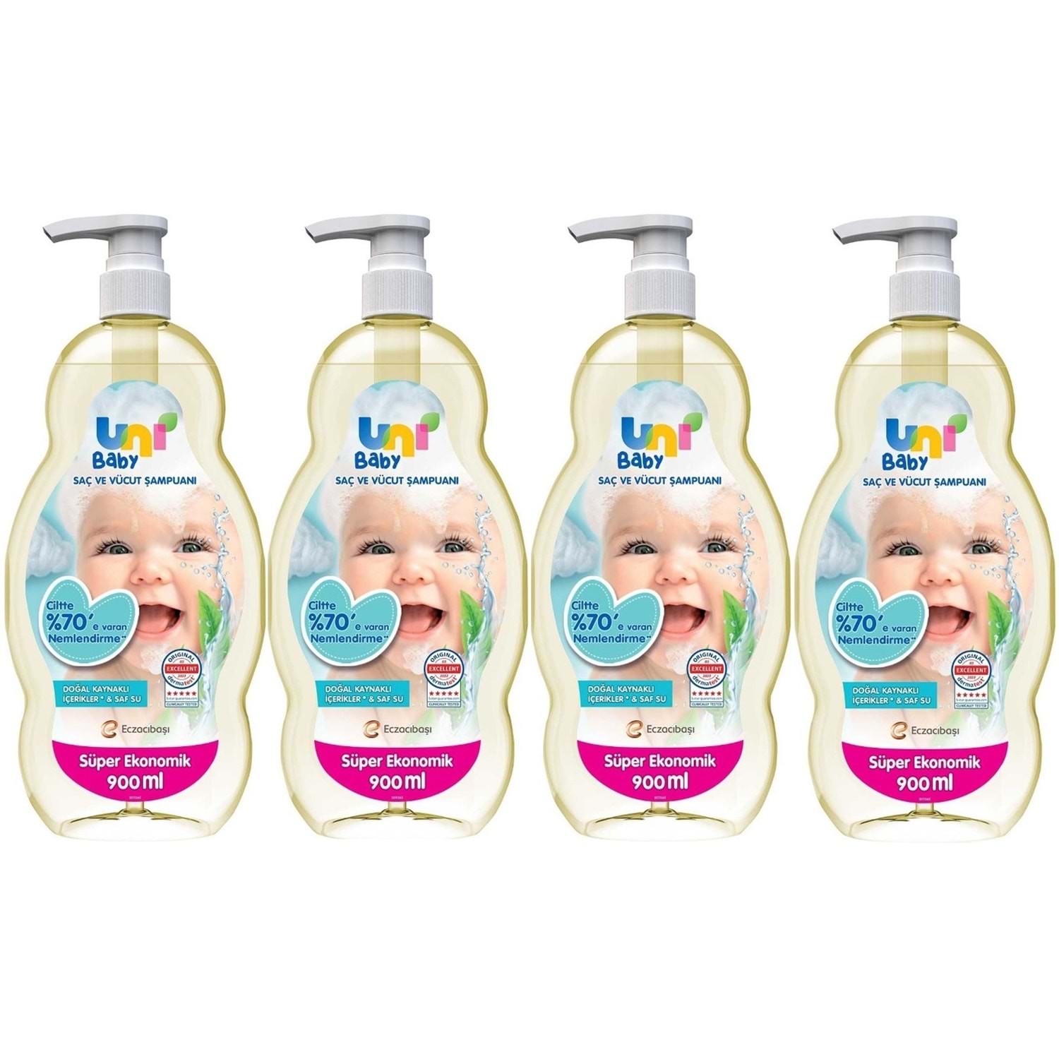 Uni Baby Bebek Saç ve Vücut Şampuanı 900ML Klasik (Pompalı) (4 Lü Set)