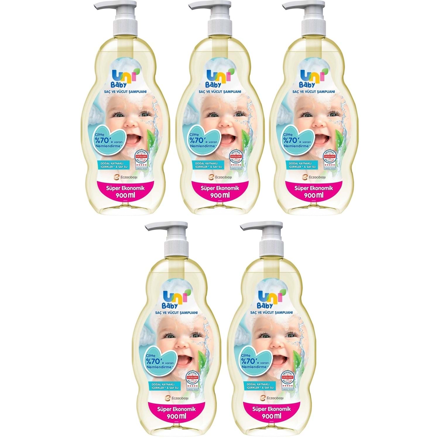 Uni Baby Bebek Saç ve Vücut Şampuanı 900ML Klasik (Pompalı) (5 Li Set)