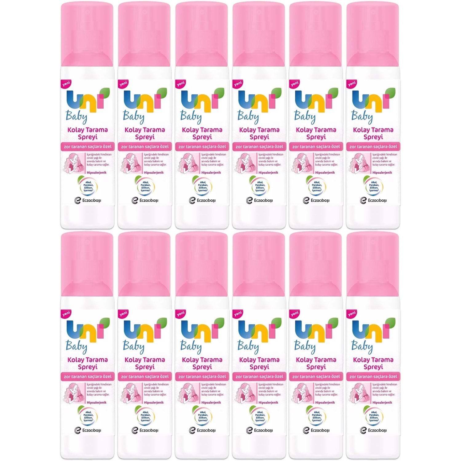 Uni Baby Kolay Saç Tarama Spreyi 200ML (Yeni) Zor Taranan Saçlara Özel (12 Li Set)