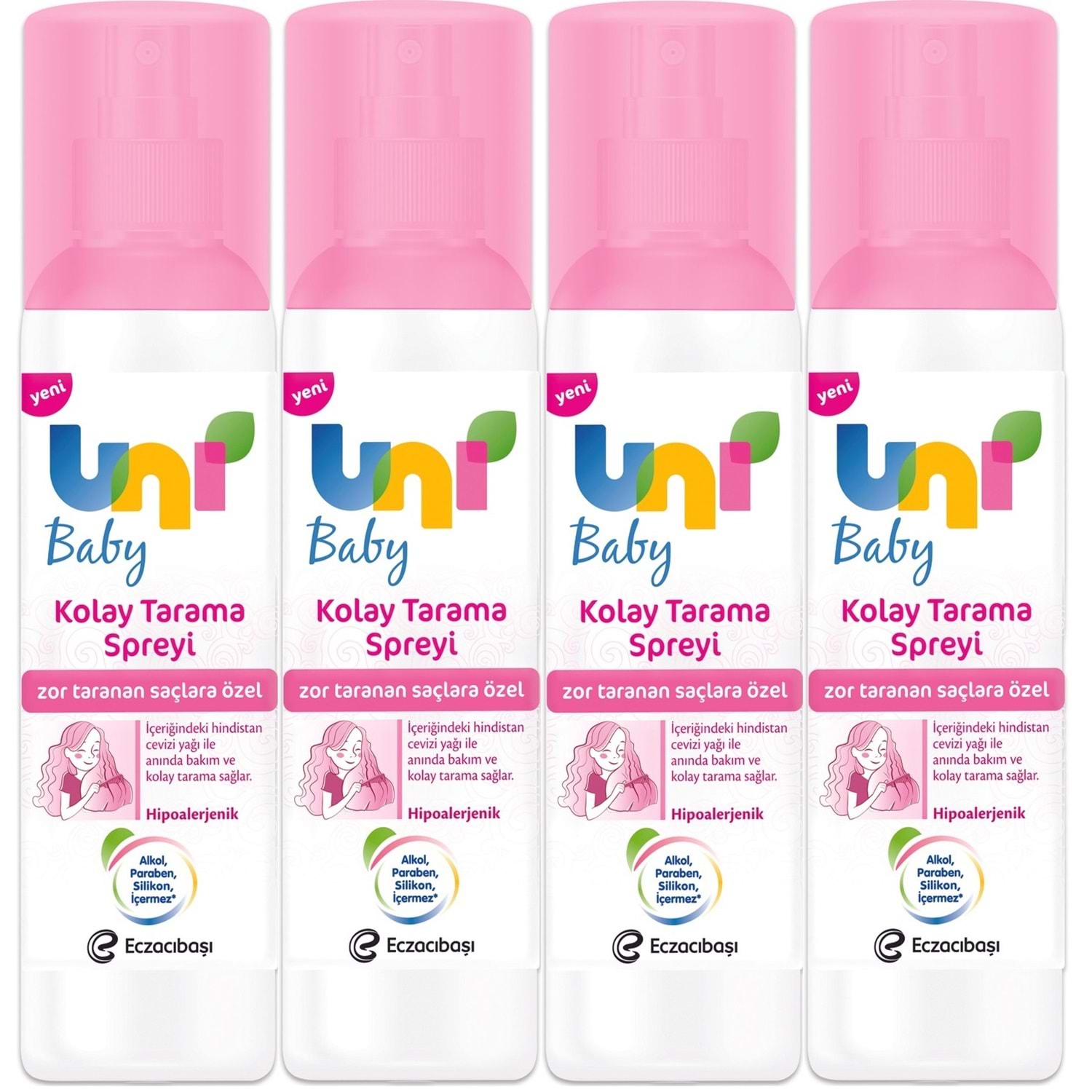 Uni Baby Kolay Saç Tarama Spreyi 200ML (Yeni) Zor Taranan Saçlara Özel (4 Lü Set)