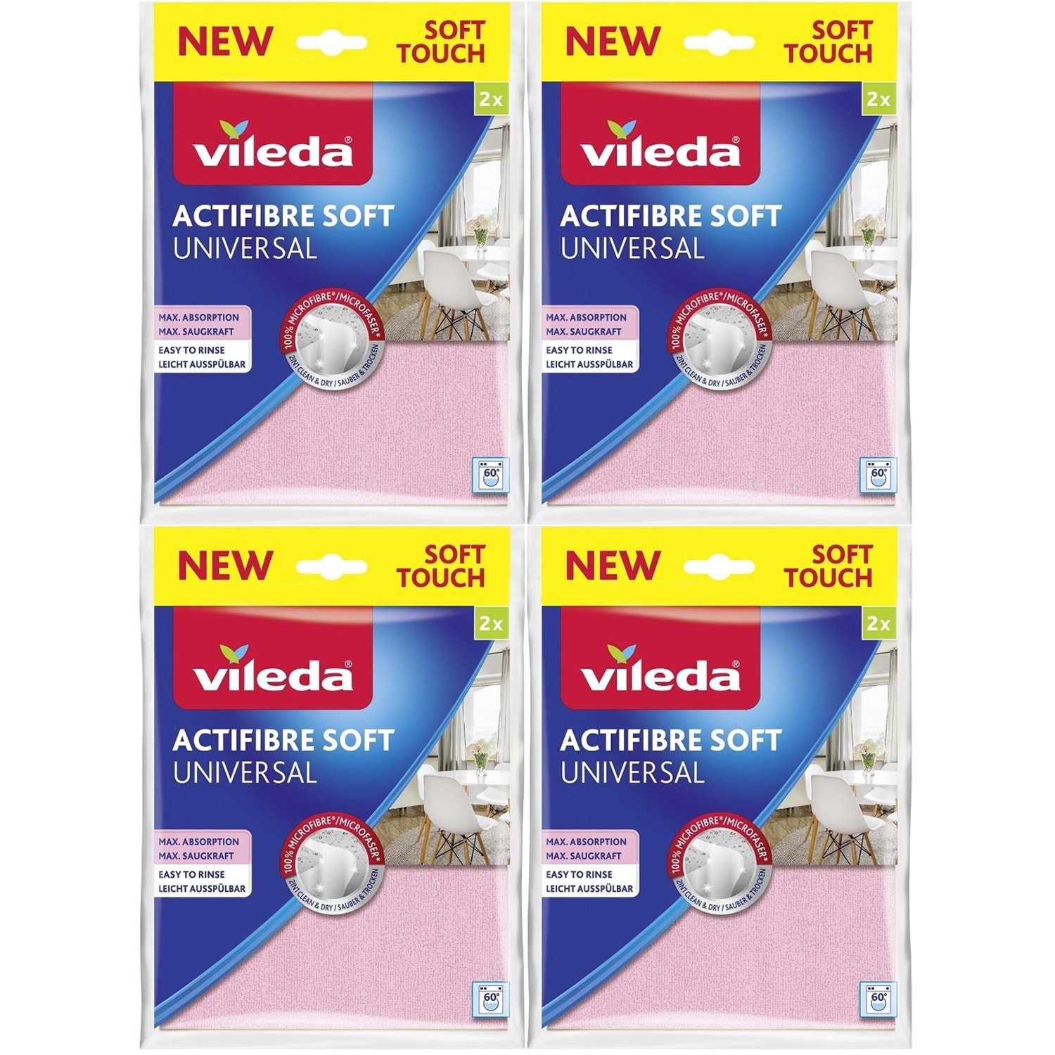 Vileda Actifibre Soft Universal New Soft Touch (Paket içi 2 Li) (4 Lü Set)