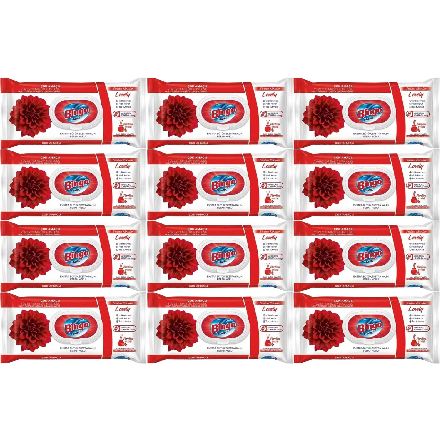 Bingo Clean Yüzey Temizlik Havlusu 96 Yaprak Sevilen Kokular Lovely - Gül (12 Li Set) 1152 Yaprak
