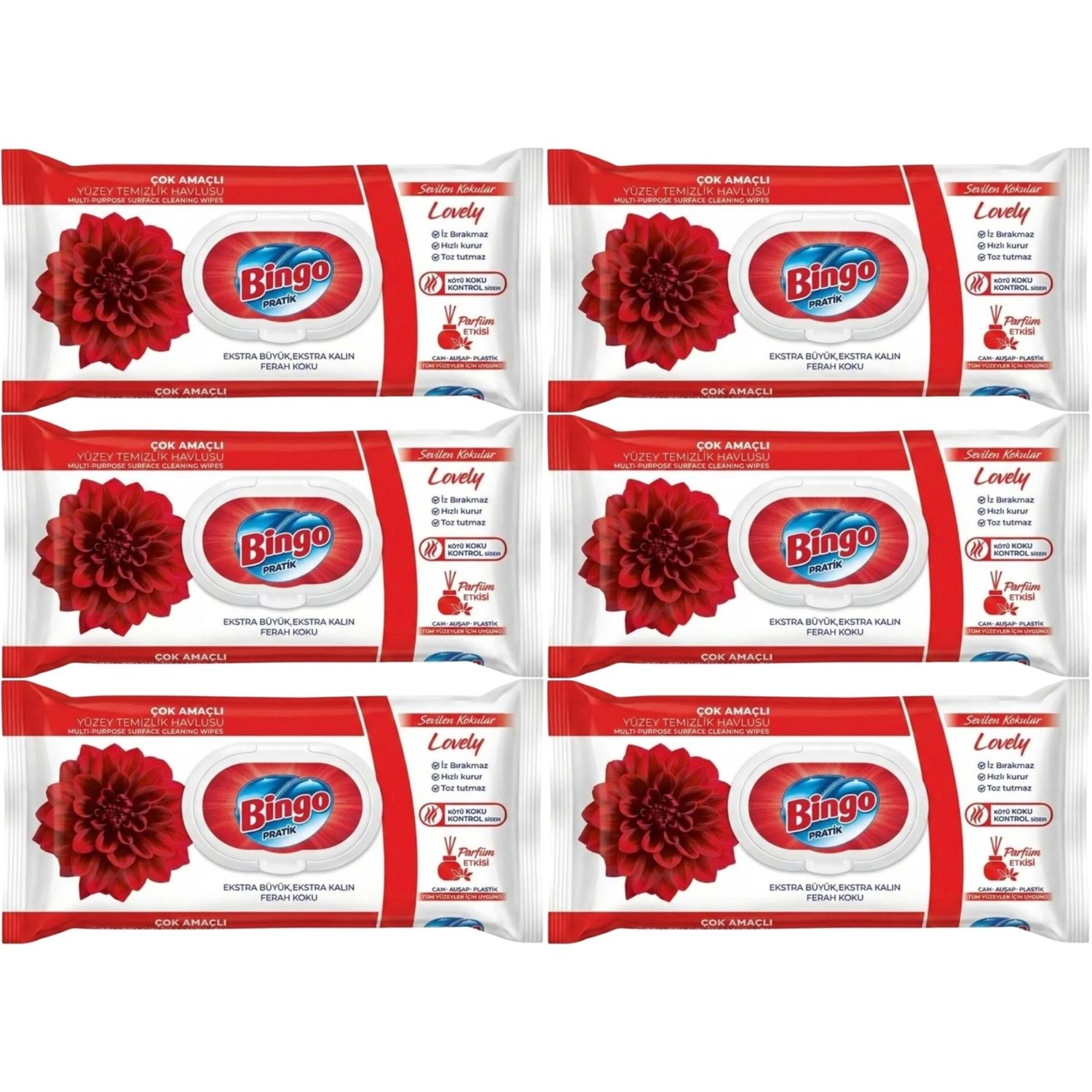Bingo Clean Yüzey Temizlik Havlusu 96 Yaprak Sevilen Kokular Lovely - Gül (6 Lı Set) 576 Yaprak