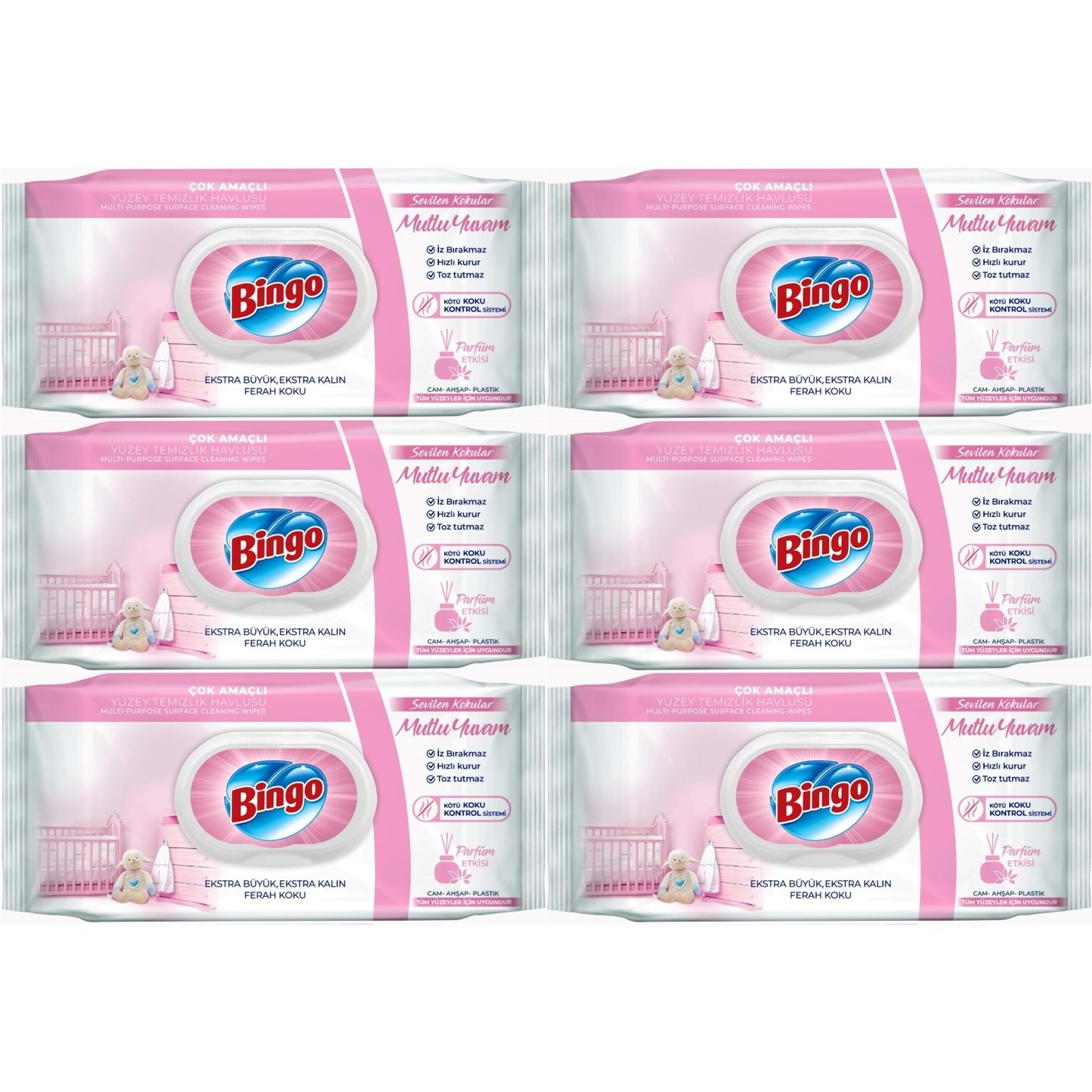 Bingo Clean Yüzey Temizlik Havlusu 96 Yaprak Sevilen Kokular Mutlu Yuvam (6 Lı Set) 576 Yaprak