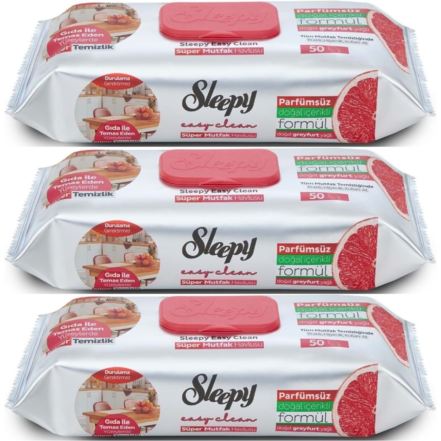 Sleepy Easy Clean Yüzey Temizlik Mutfak Havlusu - Mendili 50 Yaprak Greyfurt Yağlı (3 Lü Set) 150 Yaprak
