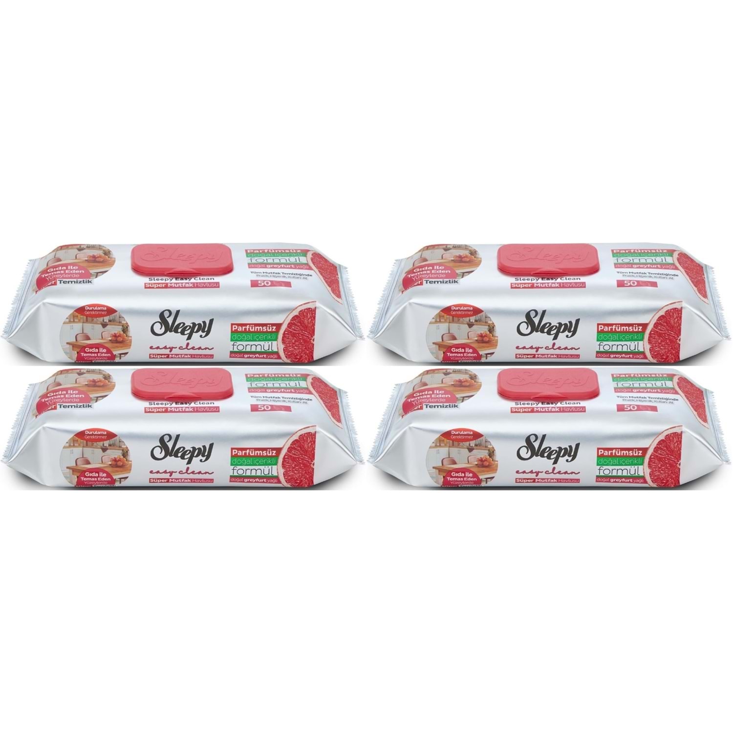 Sleepy Easy Clean Yüzey Temizlik Mutfak Havlusu - Mendili 50 Yaprak Greyfurt Yağlı (4 Lü Set) 200 Yaprak