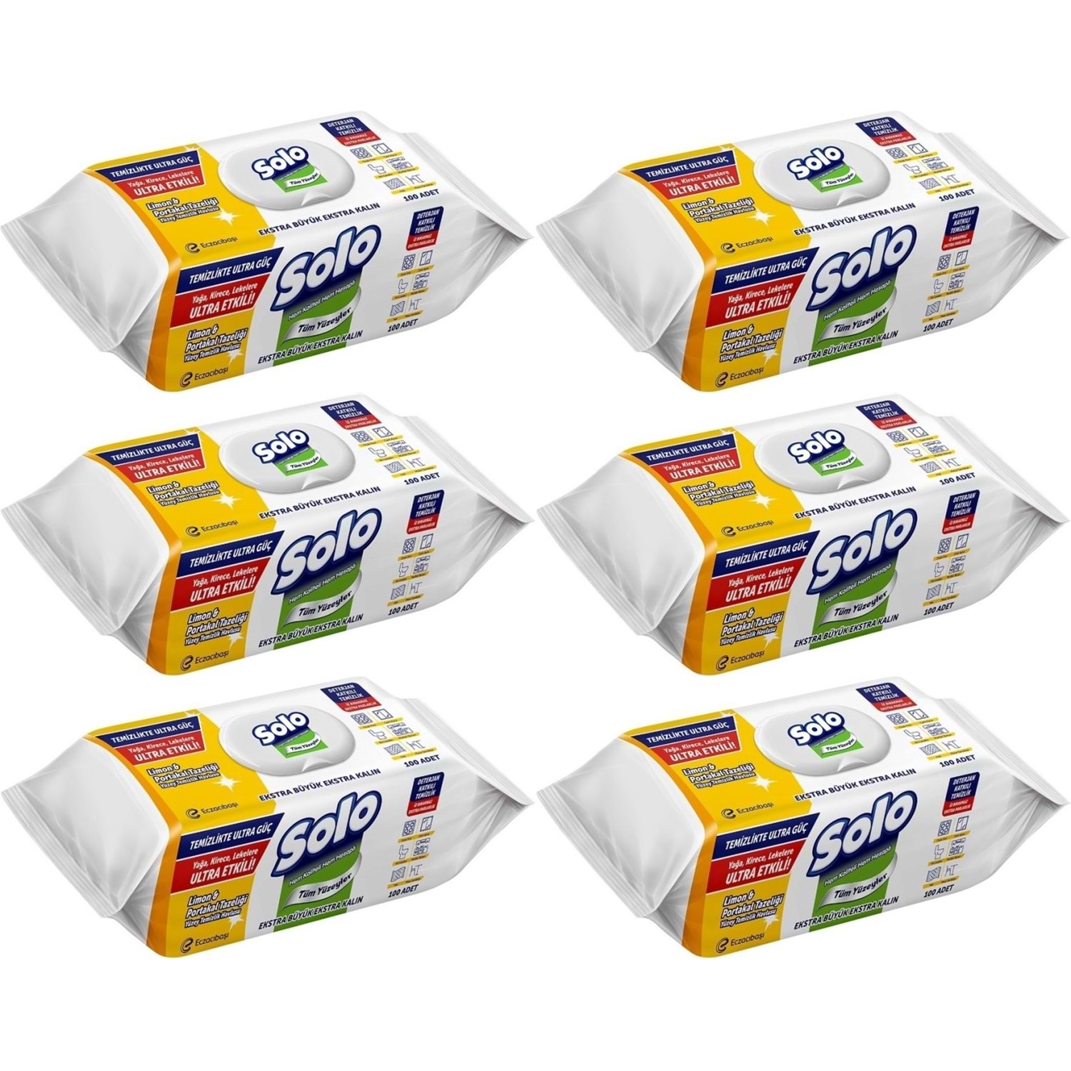 Solo Yüzey Temizlik Havlusu - Mendili 100 Yaprak Limon & Portakal Tazeliği (6 Lı Set) 600 Yaprak