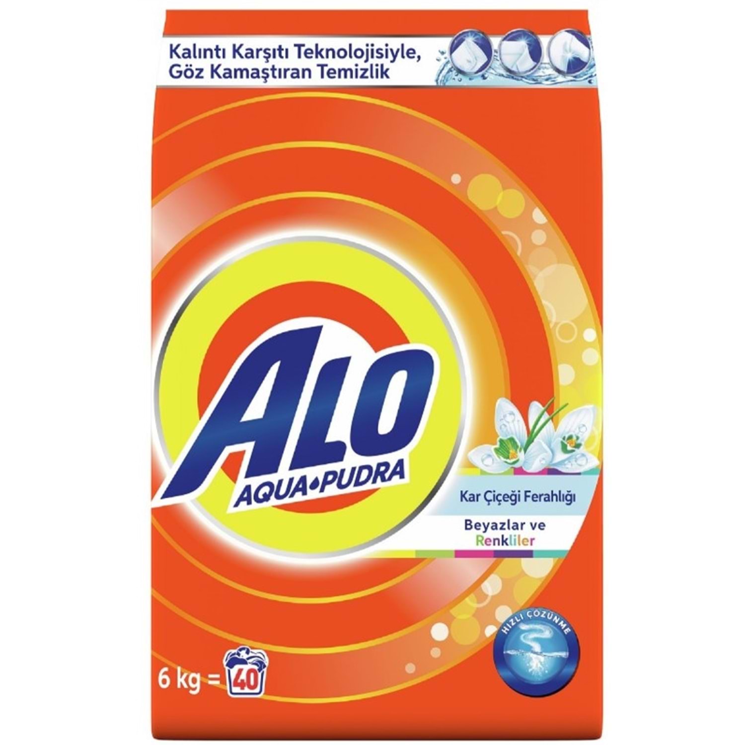 Alo Matik Toz Çamaşır Deterjanı 6KG, özel formülü sayesinde hem renklilerde hem de beyazlarda etkili temizlik sunar.