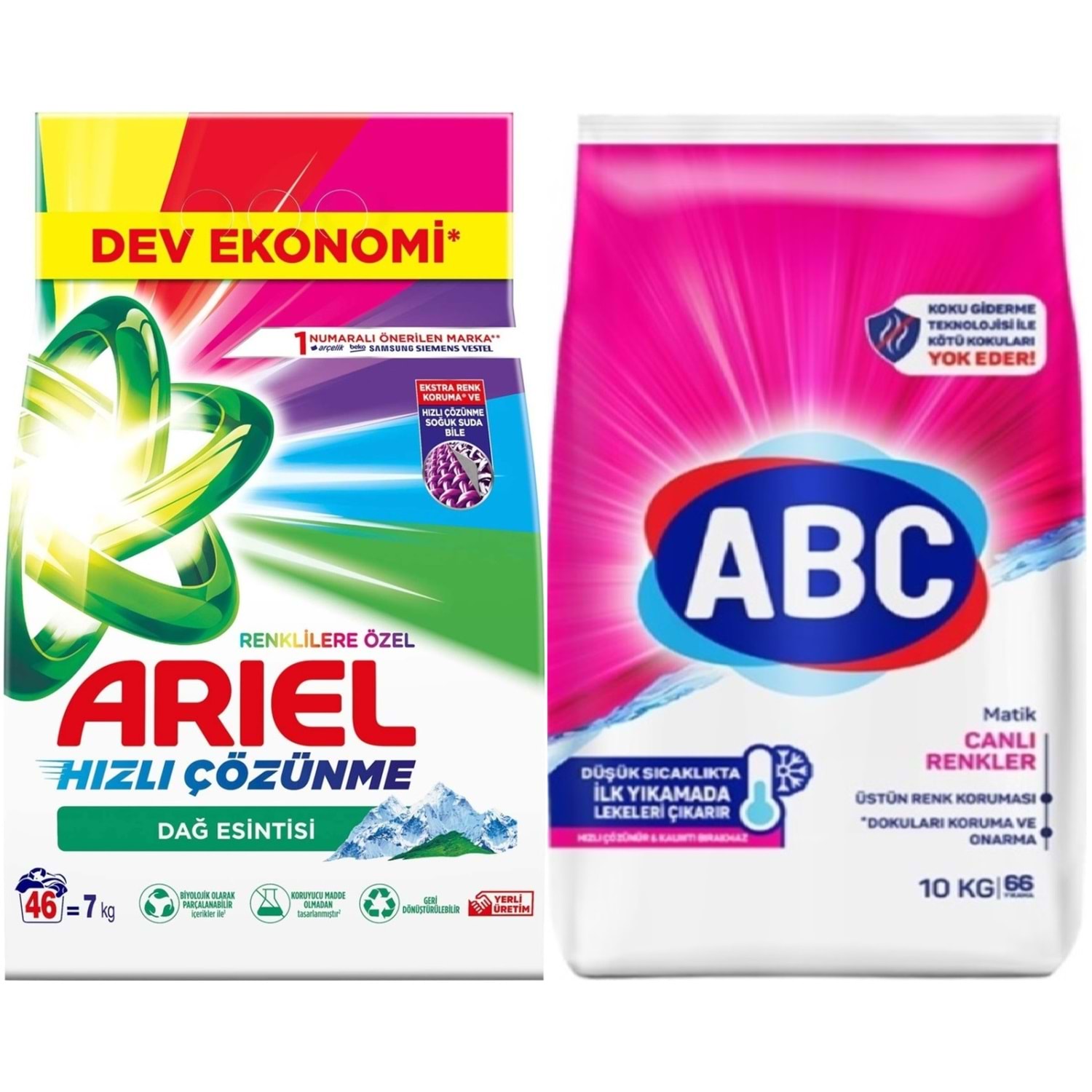 Ariel Matik Toz Çamaşır Deterjanı 7KG Renklilere Özel / Dağ Esintisi (46 Yıkama) + 10KG Canlı Renkler
