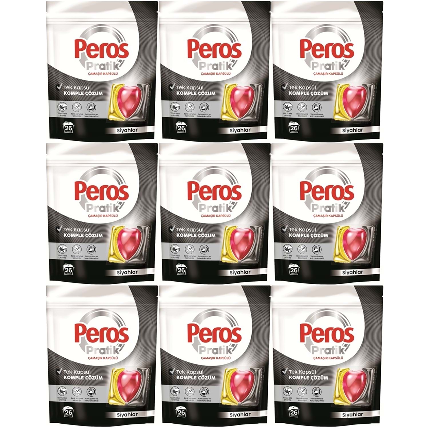 Peros Pratik Matik Çamaşır Deterjanı Kapsülü - Tableti 234 Adet Siyahlar (9PK*26)