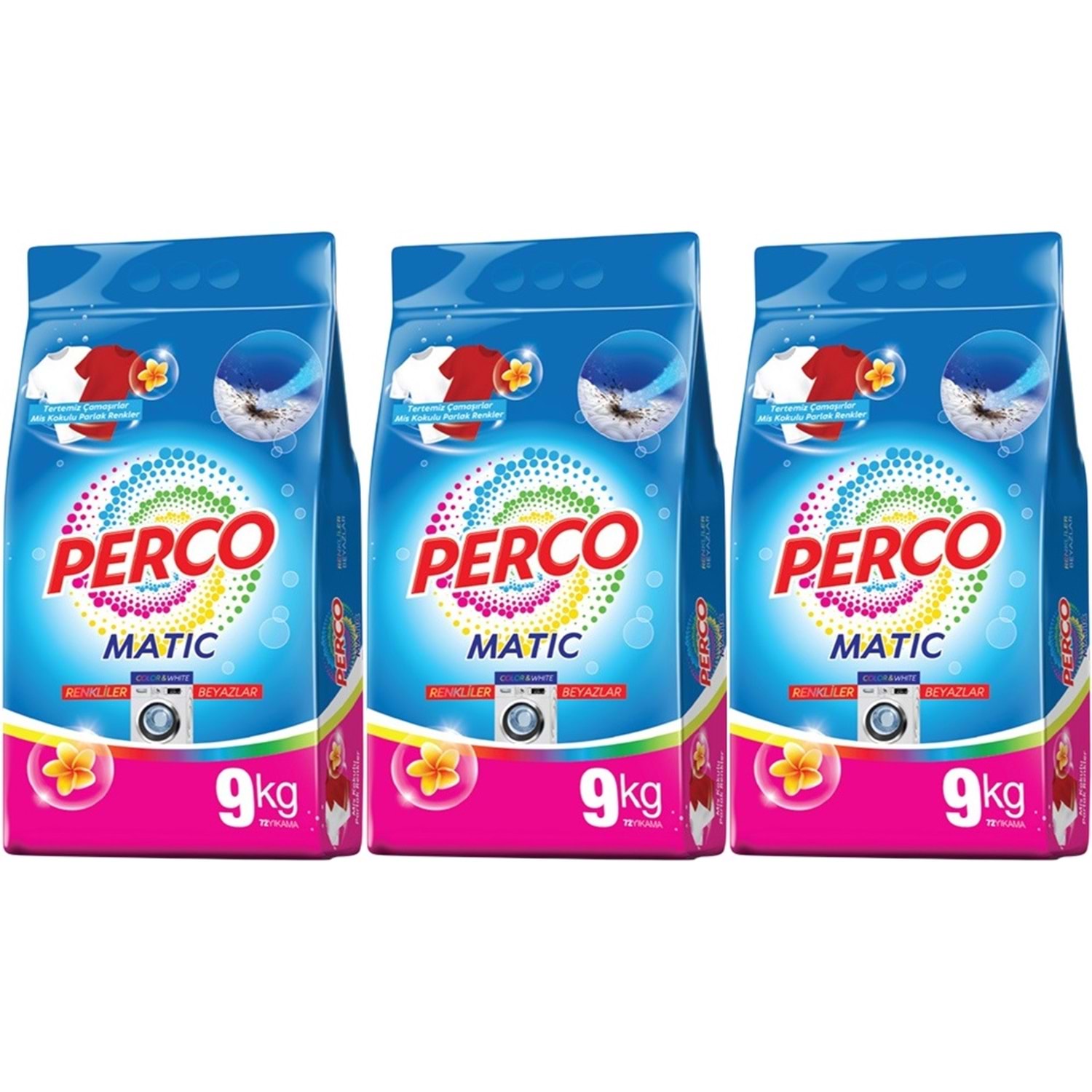 Perco Matik Toz Çamaşır Deterjanı 27KG Beyazlar ve Renkliler Tüm Çamaşırlar (216 Yıkama) (3PK*9KG)