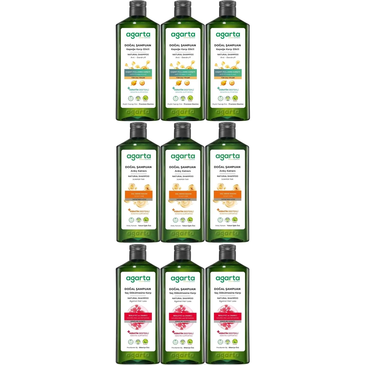 Agarta Doğal Şampuan 400 ML Kepek Karşıtı - Ardıç Katranı,Keratin - Saç Dökülmesine (9 Lu Karma Set)
