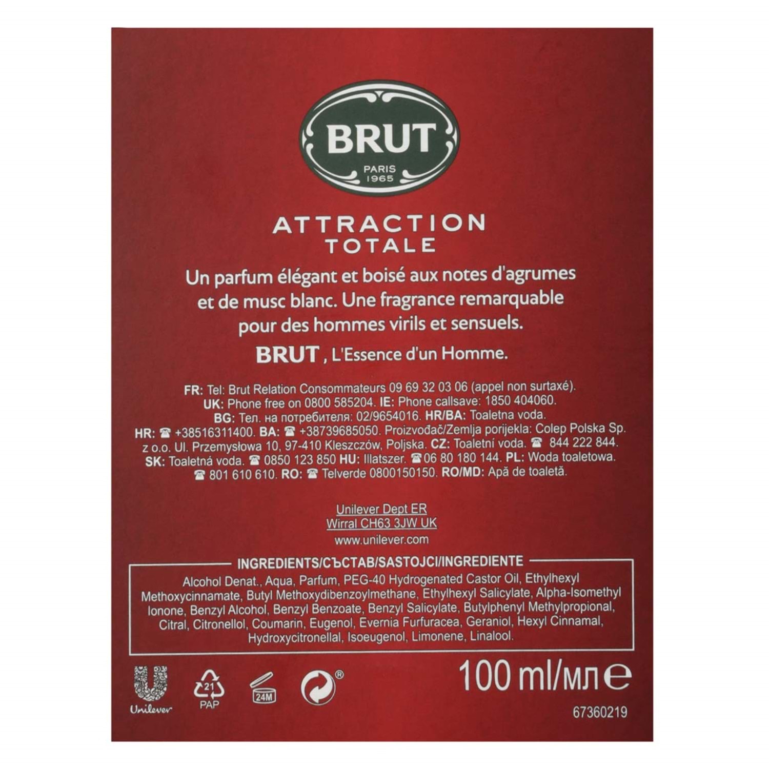 Brut Parfüm Erkek/Men 100ML Attraction Totale Edt (Kırmızı) (6 Lı Set)